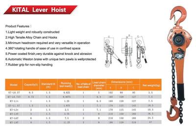 Pa lăng xích lắc tay 1 tấn 1,5 mét: KT-L mang thương hiệu Kital được sản xuất trên dây chuyền công nghệ Nhật Bản tiên tiến nhất, mang tầm đẳng cấp thế giới.